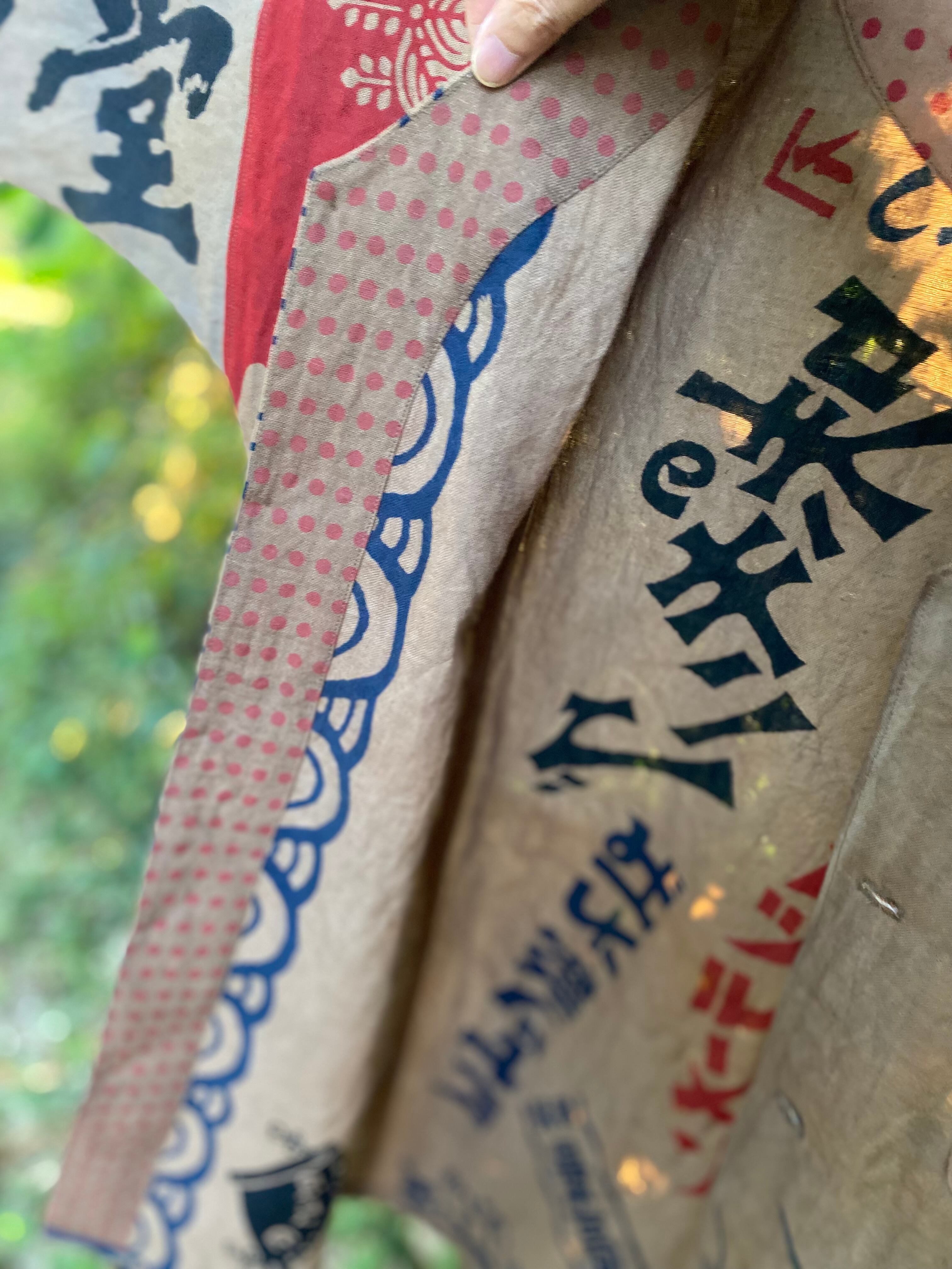 柿渋染め 鯉口シャツ 手ぬぐい生地 リメイク
