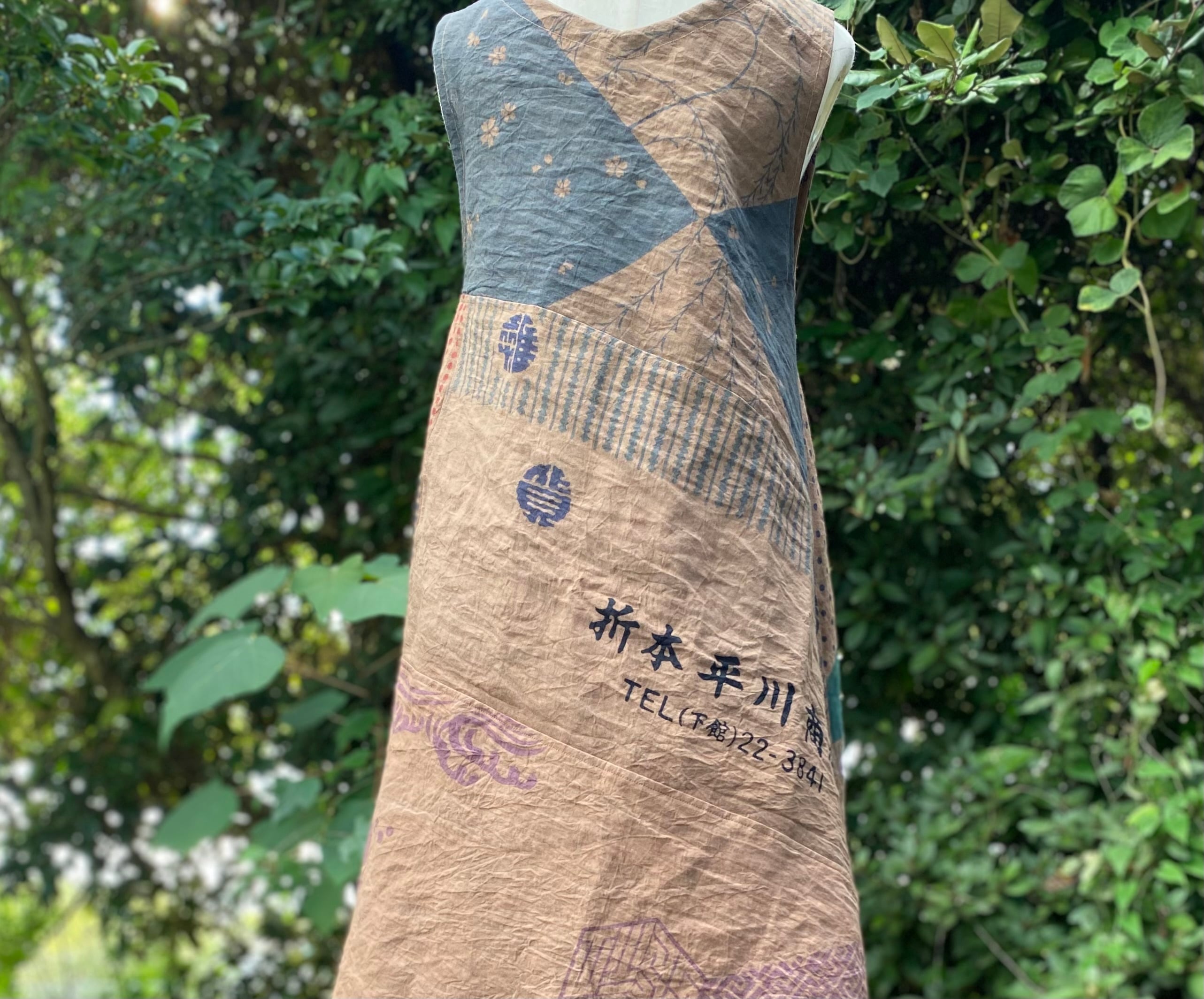 柿渋染めと柿渋染めを鉄媒染したものを組み合わせて作りました。