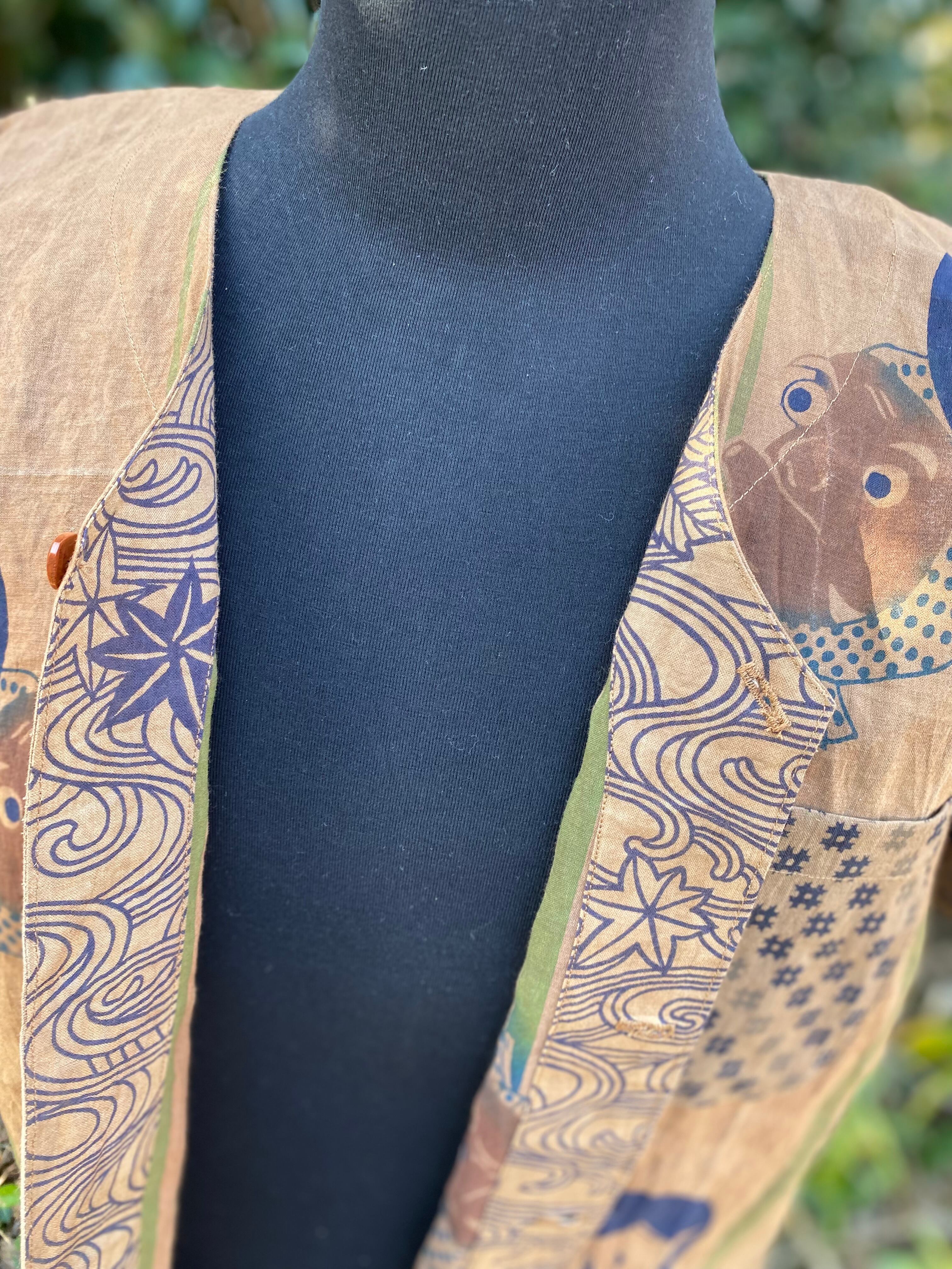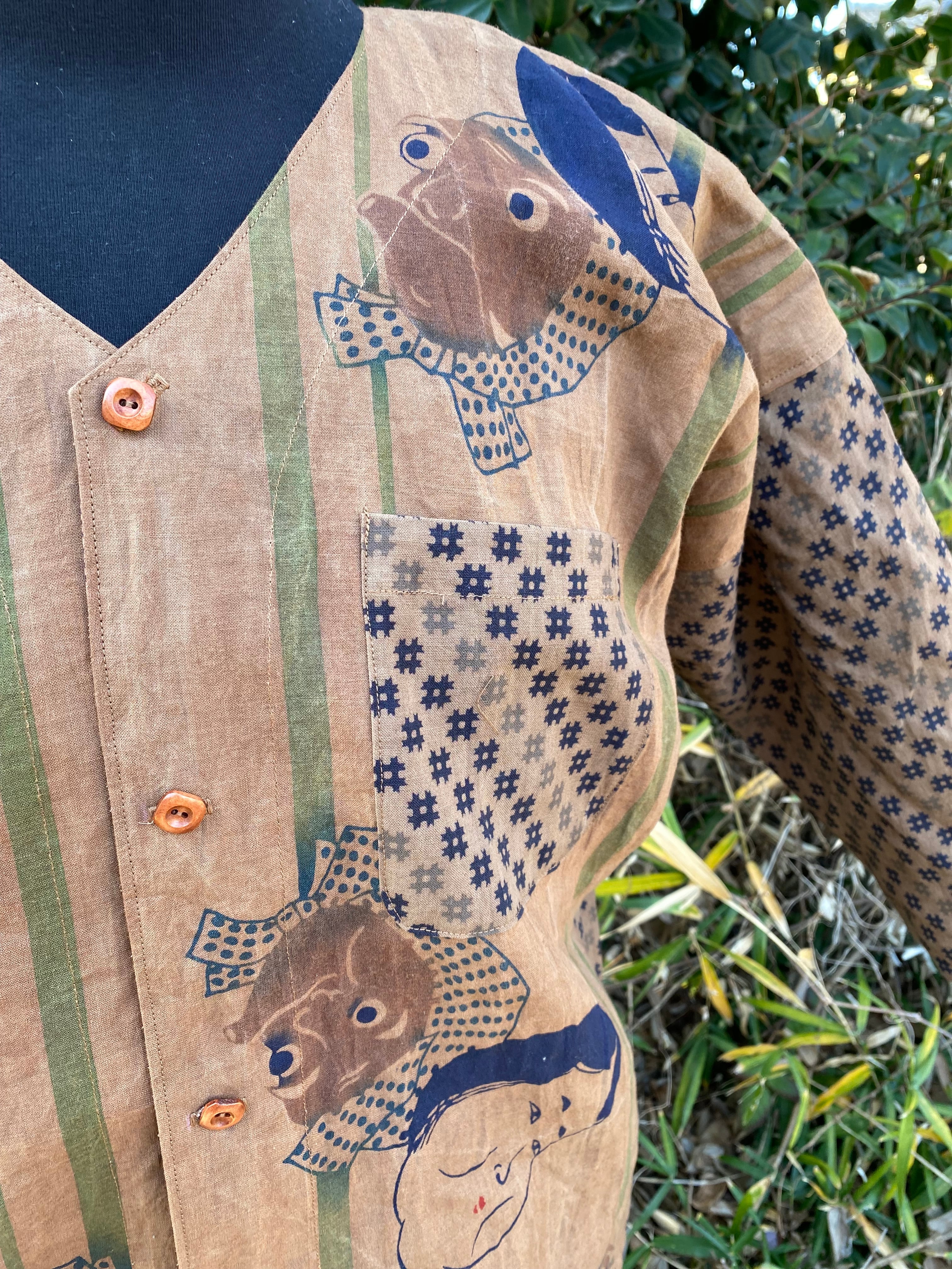 柿渋染 鯉口シャツ L koikuchi shirt 浴衣生地 おかめひょっとこ